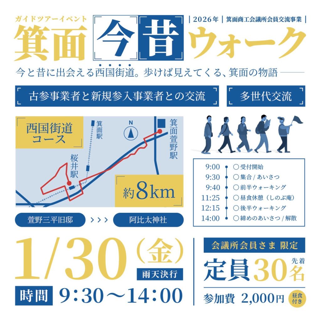 箕面の街を実際に歩きながら、歴史やエピソードをクイズ形式で楽しむ交流型ウォーキングイベントです!
